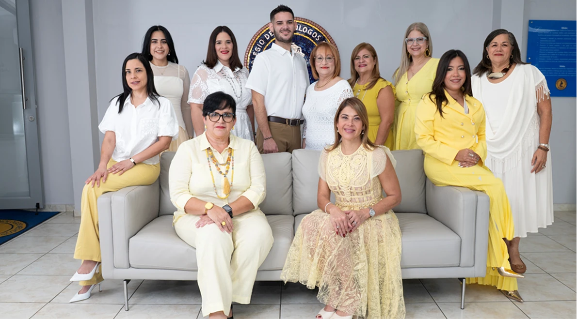Izquierda: Yahaira Morales Pérez, Sub tesorera Junta de Gobierno, Maria G. González Marrero, vocal junta de gobierno, Yaritza Matos Silva, Delegada del Capítulo Oeste a la Junta de Gobierno, Luis M. Jiménez Vázquez, Delegado del Cap. Norte a la Junta de Gobierno, Ruth E. Cáliz López, Presidenta Electa Junta de Gobierno. Derecha: Carmen E. Quiñones Quintero, Tesorera Junta de Gobierno, Sheila López Torres, Secretaria Junta de Gobierno, Delis Y. Arzola Rodríguez, Sub secretaria Junta de Gobierno, Daisy Janice Pacheco Cruz, Delegada del Cap. Sur a la Junta de Gobierno, Mercy Maldonado Belardo, Delegada del Cap. Noreste a la Junta de Gobierno, Lina I. García Quiñones, Presidenta Junta de Gobierno.
